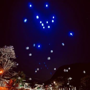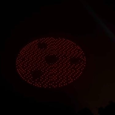 Os drones formam desenhos coreografados que podem incluir árvores de Natal, sinos, estrelas, flocos de neve e até mensagens personalizadas. É uma experiência inovadora que encanta adultos e crianças, tornando cada evento inesquecível.